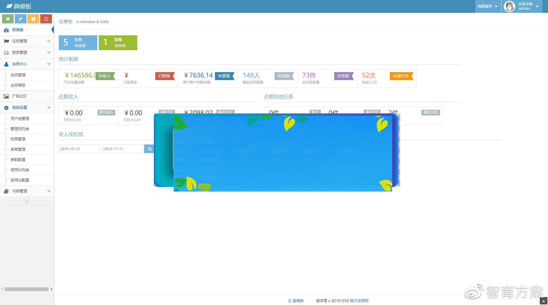 导入数据库 后台地址:/admin 账号 admin 密码 admin888