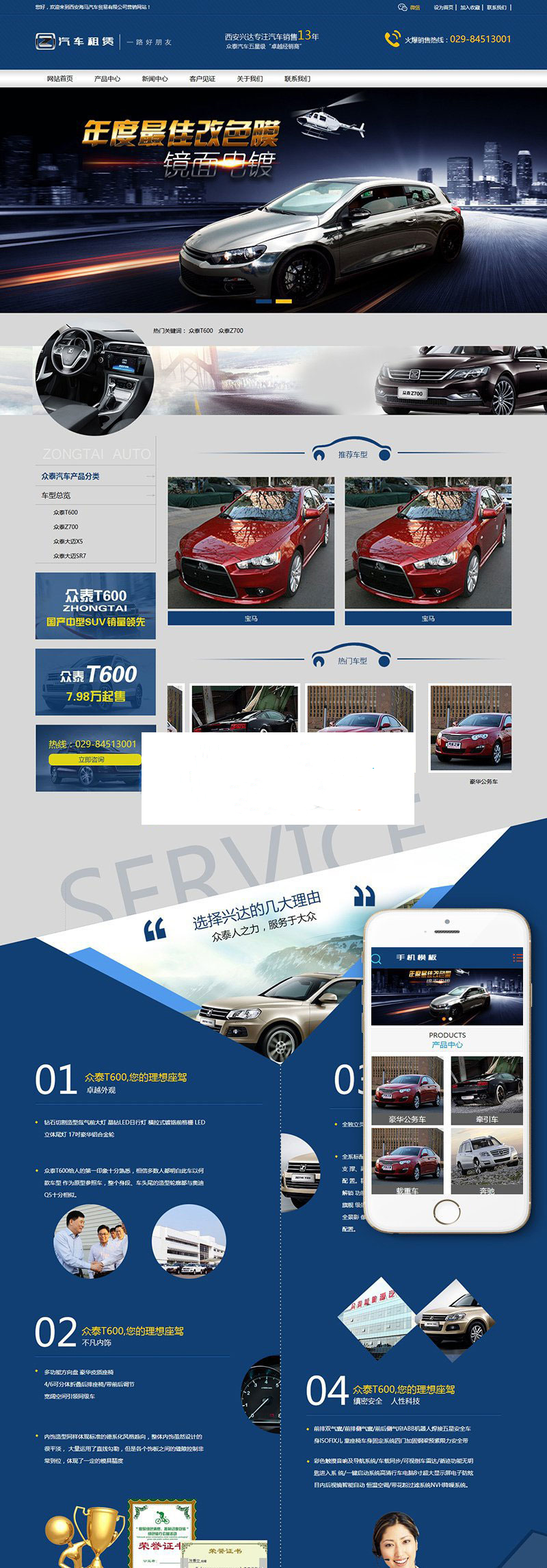 织梦dedecms营销型汽车租赁公司网站模板(带手机移动端),内附安装说明